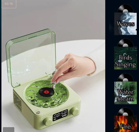 Experience the soothing white noise of our Retro Bluetooth Speaker, designed to enhance sleep and relaxation with four calming sounds: Ocean waves, birds singing, a flowing stream and a crackling bonfire.